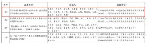 国家级教学成果奖是教育教学研究和实践领域的最高奖,按照《教学成果奖励条例》设立,每四年评审一次,特等奖需由国务院审批。此次获奖是学院首获国家级教学成果奖,是学院在“国”字号成绩的又一重大突破,充分体现了学院在天津市创优赋能项目建设的大力支持下,深入贯彻立德树人根本任务,服务国家海洋强国战略、“一带一路”建设需求,不断深化内涵建设,持续提高海船船员教育质量取得的显著成效。