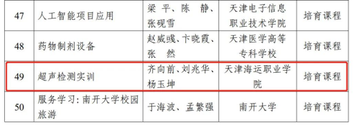 学院报送的于祯妮、刘艳、杨珍课程团队的《邮轮旅游市场营销》被评为示范课程;齐向前、刘兆华、杨玉坤课程团队的《超声检测实训》被评为培育课程。