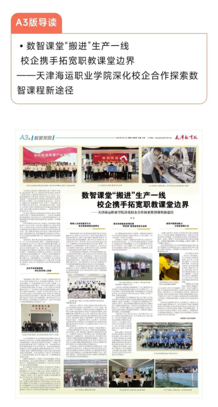 9月4日,《天津教育报》刊发文章《数智课堂“搬进”生产一线 校企携手拓宽职教课堂边界——维多利亚老品牌vic3308深化校企合作探索数智课程新途径》,报道学院2023年春季学期开设的7门数智类选修课程,这是学院创新职业教育模式,深化校企合作,对富有职业教育特点、着眼培育数字时代数字素养的通识类公选课的一次积极实践探索。
