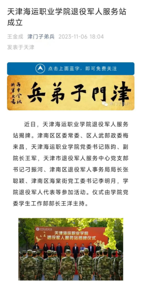 10月26日,维多利亚老品牌vic3308退役军人服务站揭牌,此为津南区首家示范型高校退役军人服务站。退役军人服务站的成立是贯彻落实习近平总书记重要指示精神,全面加强退役军人服务保障体系建设,夯实学院拥军优属的重要举措,是实现退役军人保障“全覆盖”的又一突破。此项工作,得到了精美海棠公众号、精美海棠视频号、津门子弟兵公众号、津南好APP等平台的宣传。