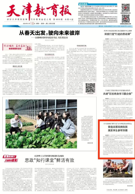 3月18日,《天津教育报》刊发文章《全市首家高校“拥军门店”在我院成立 营造浓厚双拥氛围 激发学生参军热情》,报道全市首家高校“拥军门店”在我院成立。