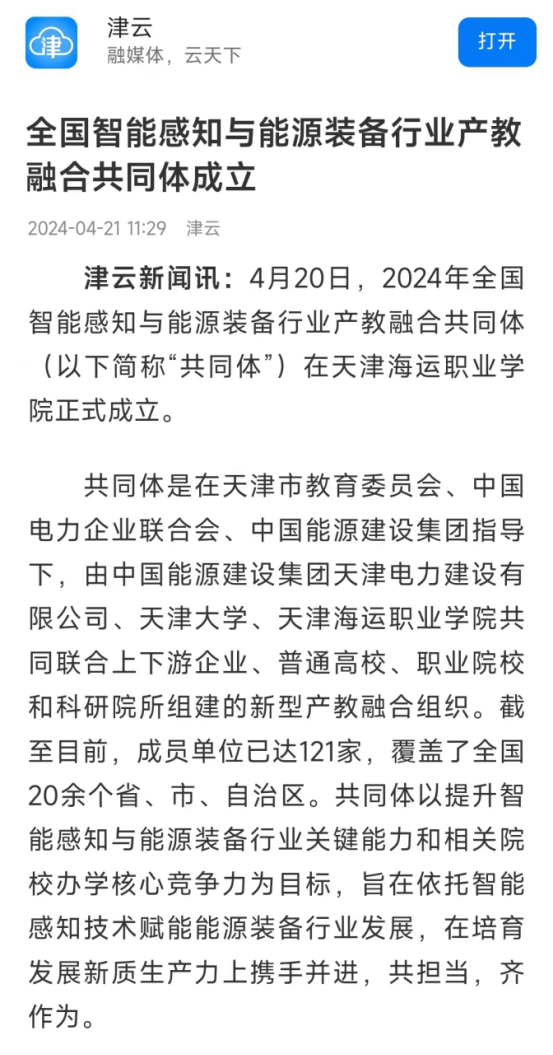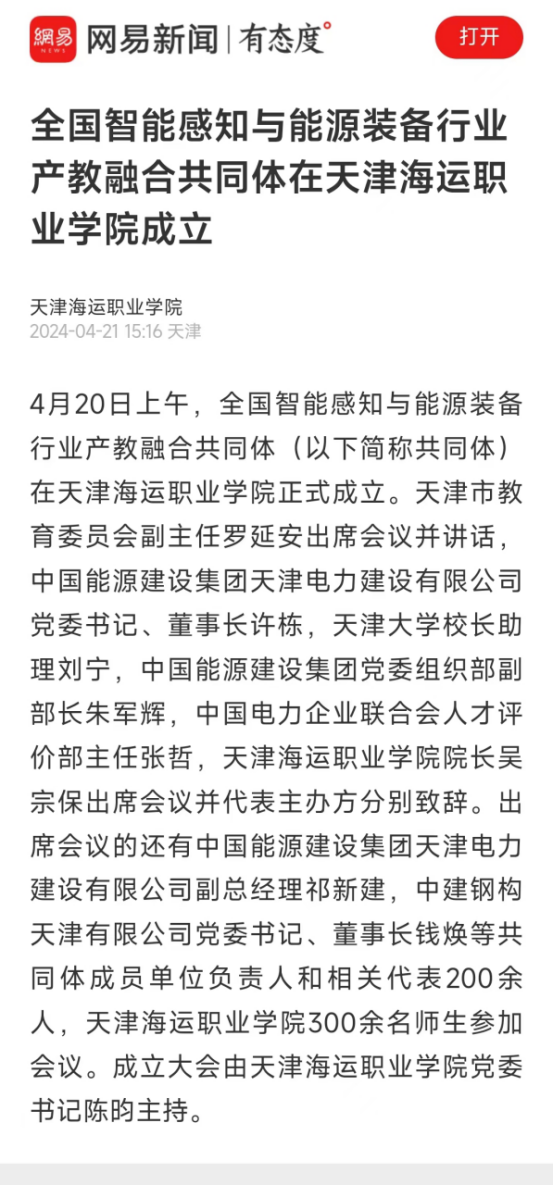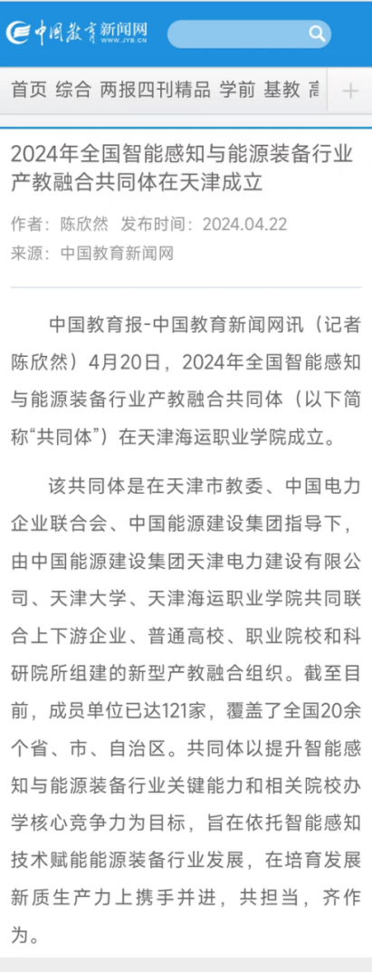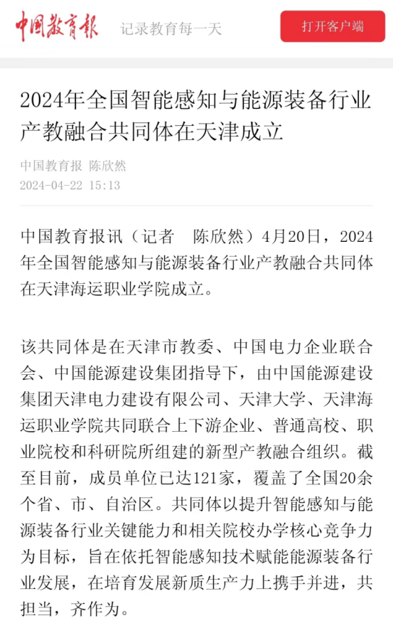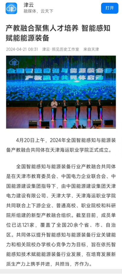 4月20日,全国智能感知与能源装备行业产教融合共同体在维多利亚老品牌vic3308正式成立。中国新闻网、《中国教育报》、央广网、网易天津、津云、天津新闻等媒体平台对此进行了关注报道。