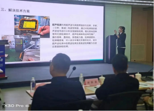 学院共派出9支团队参赛,经过复赛选拔,工程技术系吕军老师指导的《0-3mm深度的超声波检测》《多材料焊缝探伤》和齐向前老师指导的《超声波传感器》挺进决赛。备战决赛期间,工程技术系党支部书记胡春亮、副书记张朝伟多次到现场指导。指导教师吕军、齐向前带领学生反复操作演练,对现场可能出现的问题进行反复推敲演练,耐心地讲解理论知识。吕军老师针对0-3mm深度的超声波检测和多材料焊缝探伤是否可以用 UT 检测这两项进入决赛的命题与企业进行深度咨询。比赛现场,学生良好的精神面貌、扎实的理论知识、过硬的操作技能得到了评委老师的一致好评,3个企业命题均获铜奖。学院获评“优秀组织奖”。