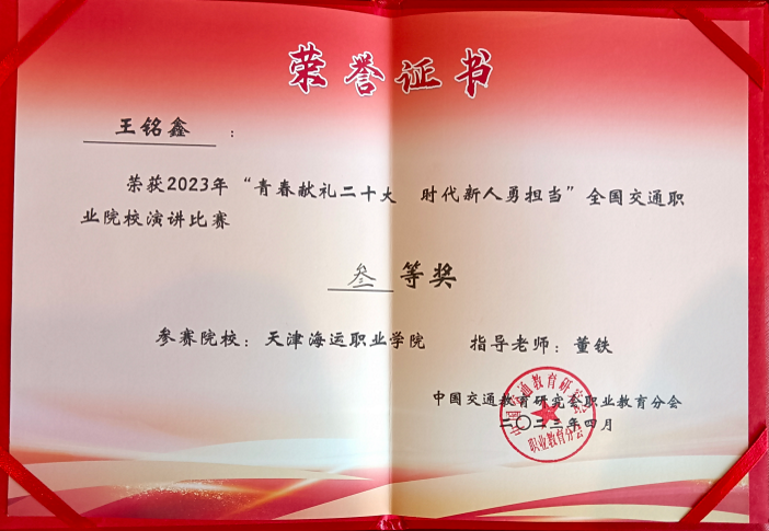 会议期间隆重举行“青春献礼二十大 时代新人勇担当”演讲比赛决赛。来自全国18所交通职业院校的学生代表同台竞技,经过激烈角逐,我院工程技术系王铭鑫同学《以匠心守初心,以初心致未来》的主题演讲荣获三等奖。