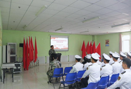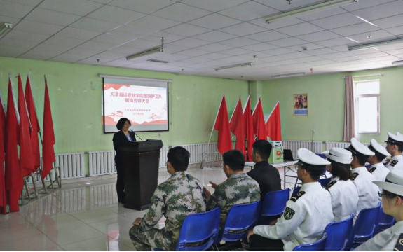 为深入学习贯彻习近平新时代中国特色社会主义思想,全面落实立德树人和强军目标的根本任务,激发新时代青年学生献身国防、报效国家的热情,市教委和天津警备区战备建设局在中国共产党成立100周年之际,面向天津市学校开展“爱党报国铸军魂、立德树人展风采”国旗护卫队展演活动。我院领导高度重视和支持,于5月11日下午在学生活动中心二楼举行了学院国旗护卫队展演誓师动员大会。党委学生工作部部长赵雯静、航海技术系军事辅导员刘伟、特邀军训指导教官成晓璐及全体国旗护卫队队员50余人参加,大会由学院军事化教育管理办公室王金成老师主持。