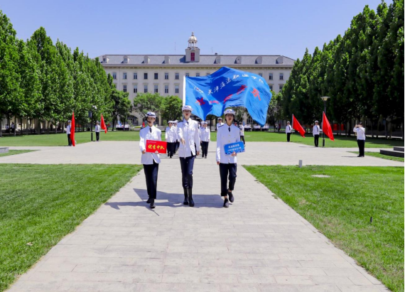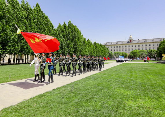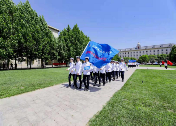 为加强学院准军事化管理内涵建设,巩固和提升学院准军事化管理成果,发挥优秀中队的示范引领作用,以优异成绩向中国共产党成立100周年献礼。学院党委学生工作部于2021年5月25日下午1:30分,在北门旗海隆重举行了“军歌嘹亮献给党,砥砺奋进铸辉煌”—庆祝建党100周年优秀队列及军歌展演活动,学院党委书记张建成、党委副书记曹晓发以及各系部领导、全体学生管理人员、学生代表1000余人参加了此次活动。