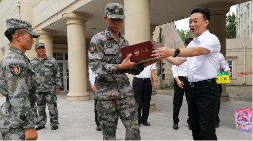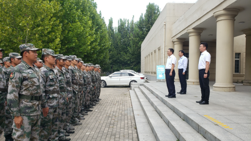 2021年9月30日中午,学院党委书记张建成同志、院长吴宗保同志、副院长王军同志慰问看望了军训教官。张书记对承训教官表示感谢,提出了军训要求。院领导为教官们送上了节日问候。