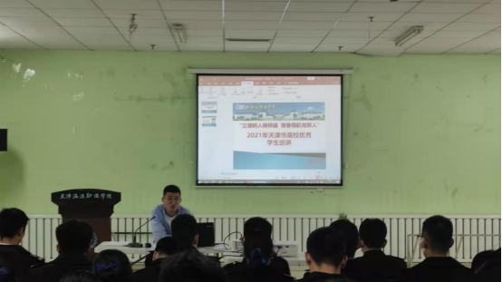 天津市2021年优秀大学生巡讲团成员霍旭戈到校为学生作报告。霍旭戈荣获2020年天津市大学生自强自立年度人物、天津市海河自强特等奖学金、荣获国家奖学金,2021年毕业于天津大学仁爱学院。