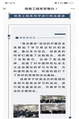 在“宪法宣传周”期间,党委学生工作部、团委和各系纷纷组织开展了多种形式的线上、线下主题学习宣传活动,带领学生深入学习习近平法治思想、党的十九届六中全会精神、相关法律法规,在全院范围营造学法、知法、用法的良好氛围,让法律意识、法治思想真正融入广大师生的学习、工作和生活,力求做到“每一天都是宪法日”。