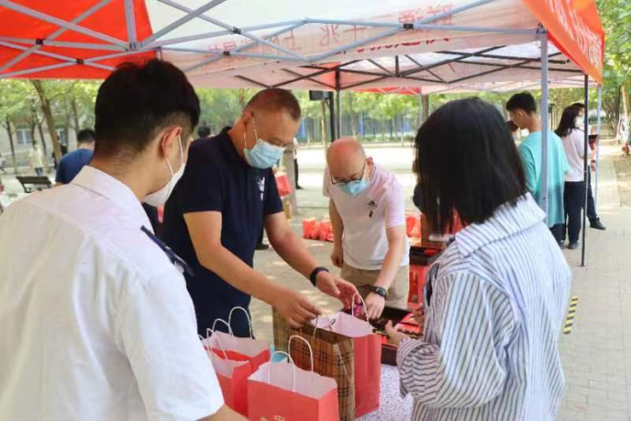 王坤龙副院长携党委学生工作部和各系老师在活动现场向同学们发放,同时也将学院的祝福和问候送给大家。