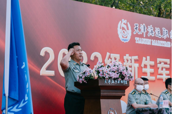 党委学生工作部教师王金成同志带领全体2022级参训同学庄严宣誓:时刻维护海运荣誉;服从命令,听从指挥;严格训练,严格要求;尊重教官,恪守纪律;不怕困难,顽强拼搏;磨炼意志,锻炼自我;创造佳绩,为院争光。