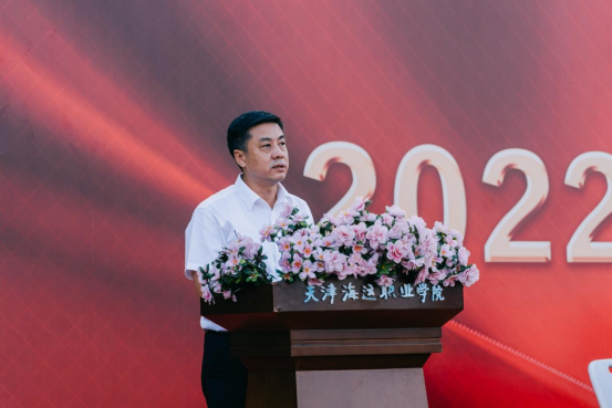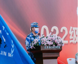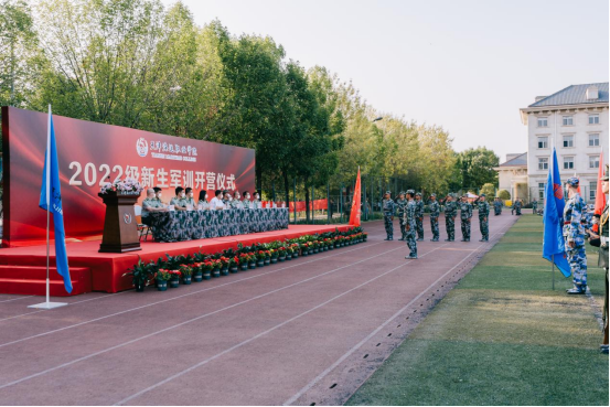 副院长王军同志讲话,鼓励同学们要以军人为榜样,以饱满的热情、昂扬的斗志、顽强的毅力接受军训洗礼。坚定理想信念、养成优良作风、磨练意志品格,为大学生活开好头、起好步。一要赓续红色血脉,发扬中国军人吃苦耐劳、勇于拼搏的优良传统和作风。二要在军训中发扬流血流汗不流泪的革命精神,树立掉皮掉肉不掉队的坚定决心,严格要求自己,刻苦训练,磨炼意志品质。三要将个人理想与国家、民族的命运紧密结合,以实际行动迎接党的二十大胜利召开。