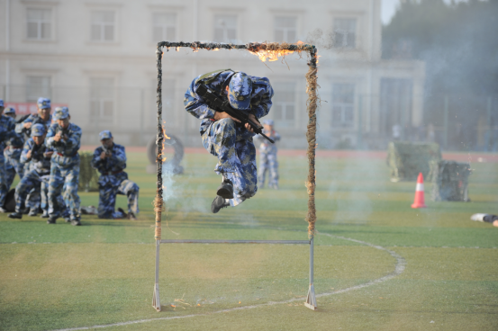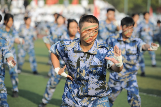 蓝天白云,秋日骄阳,海运学子身着戎装;飒飒英姿傲骨,堪堪少年襟肠。在分列式展示中,新同学们以饱满的热情、挺拔的军姿、整齐的步伐、嘹亮的口号展示了军事技能训练成果。同时,学生们还展示了擒敌拳、综合战术演练等军训内容。