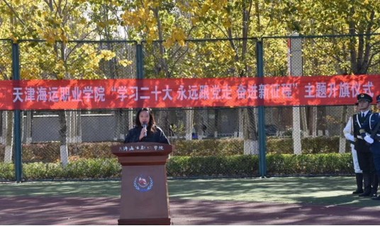 为使同学们进一步深入学习领会党的二十大精神,自觉将大会精神贯彻到日常学习工作中去。2022年11月13日,学院举行了以线上线下新模式的“学习二十大 永远跟党走 奋进新征程”主题升旗活动。党委学生工作部部长王洋同志、学院军事化教育管理办公室老师王金成同志及学生代表一同参加了线下升旗活动,学院其他学生管理人员及学生通过线上班会形式观看了活动视频。活动由学院团委书记、党委学生工作部副部长董铁同志主持。