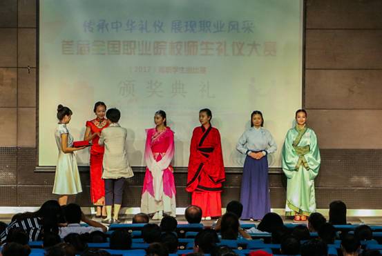 为了彰显中华传统礼仪文化的时代价值,展现职业院校师生的良好形象,引领职业院校在人才培养目标、课程建设、礼仪教育教学、实习实训创新等方面的改革,为全国职业院校搭建一个全国礼仪教育教学交流展示的平台,2017年6月17日-18日,由中国职业技术教育学会人文素质教育专业委员会举办的以“传承中华礼仪 展现职业风采”为主题的“首届全国职业院校师生礼仪大赛”(高职学生组)比赛在我院成功举办。