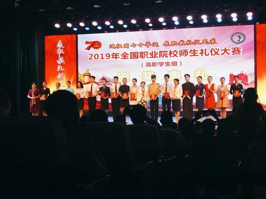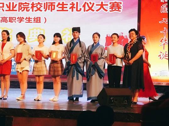 为参加本次比赛,学院参赛队团结协作,克服时间紧、训练项目多等诸多困难刻苦训练。在规定礼仪操、自主创编礼仪操、礼仪情景剧、传统礼仪、个人职业仪态展示等6大项8小项1318人次的比赛中,我院参赛队凭借娴熟的动作、优雅的仪态、精彩的礼仪展示脱颖而出,最终荣获团体二等奖。其中,校园礼仪操比赛获一等奖;礼仪情景剧比赛获得三等奖;学生团体项目二等奖;陈焱同学荣获传统礼仪个人任选题项目一等奖、传统礼仪个人自定题项目二等奖、学生传统礼仪展示总成绩三等奖;张傲琪同学荣获传统礼仪个人任选题项目二等奖、传统礼仪个人自定题项目二等奖、学生传统礼仪展示总成绩三等奖;吴丽娜同学荣获个人仪态展示项目三等奖,演讲比赛三等奖,个人单项三等奖;门玉滢同学荣获个人仪态展示项目一等奖等优异成绩。