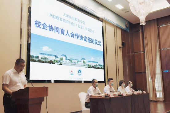 中船舰客教育科技(北京)有限公司鲁慧娟总经理、吴宗保院长分别致辞。鲁慧娟总经理首先感谢学院领导对合作的大力支持并介绍了中船集团在大型邮轮建造、1+X邮轮职业技能等级证书等方面开展的工作。她表示,希望能够与学院在邮轮人才培养等多个层面鼎力同行,开创新局面。