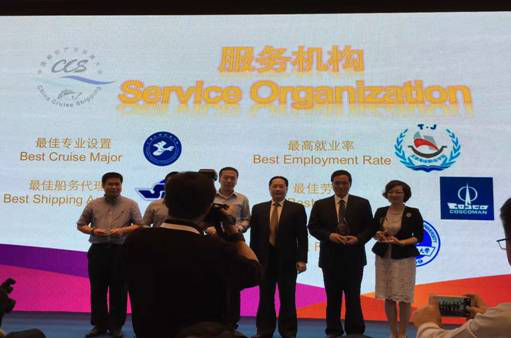 在9月24日晚上举行的CCYIA10周年答谢晚宴暨第四届中国邮轮年度大奖颁奖典礼上,学院荣获“最高就业率”奖,武宝林院长代表学院上台领奖。