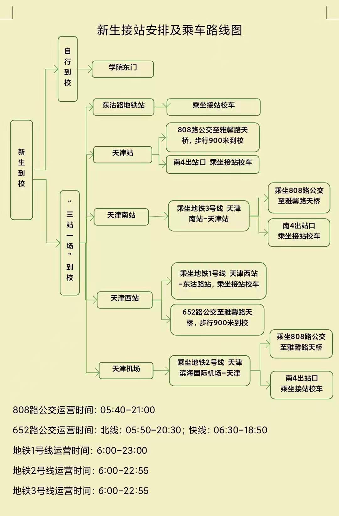 2、校外接站点:天津站南4出站口、地铁1号线东沽路地铁站