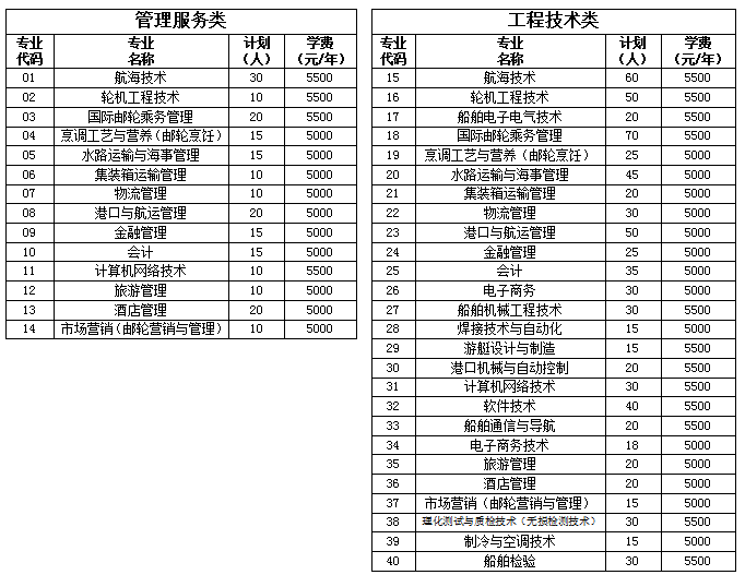 1.轮机工程技术、船舶电子电气技术专业建议男生报考,其余专业男女不限(鉴于用人单位对航海类专业毕业生的身体要求,建议报考航海类专业考生的肝功能体检结果为正常)。
