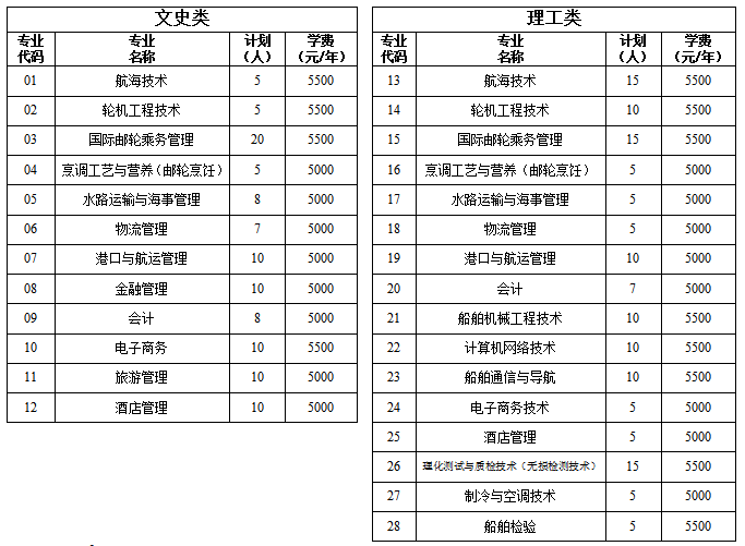 1.轮机工程技术、船舶电子电气技术专业建议男生报考,其余专业男女不限(鉴于用人单位对航海类专业毕业生的身体要求,建议报考航海类专业考生的肝功能体检结果为正常)。