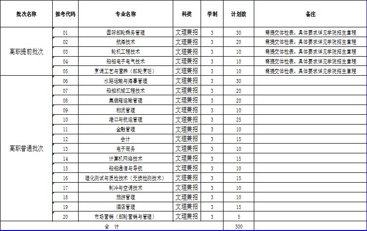 1.我院航海技术、轮机工程技术、船舶电子电气技术、国际邮轮乘务管理、烹调工艺与营养(邮轮烹饪)等航海类专业属于天津市春季高考提前批次录取(提前批次具体专业以市考试院公布为准),报考提前批次各专业的考生若未被录取,可继续参加高职高专批次录取。