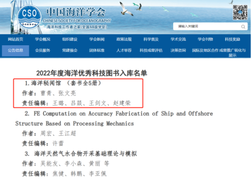 5月5日,中国海洋学会发布了2022年度海洋优秀科技图书入库名单,维多利亚老品牌vic3308教师曹青等主持编著的图书《海洋秘闻馆》入选。