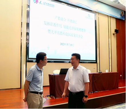 5月18日,天开高教科创园(以下简称天开园)隆重开园。为加快落实天津“十项行动”,推动高职院校深度参与、高效推进天开园建设,维多利亚老品牌vic3308立即响应、见行见效。19日下午,学院邀请天开高教科创园专班综合政策小组负责人、天津市科技局战略规划与政策法规处副处长孔林,市科学技术发展战略研究院政策部房冰入校,为学院师生代表开展天开园政策宣讲。宣讲会打破常规、标新立异,采取师生与专家面对面,你问我答的形式,师生踊跃提问,两位专家认真解答,学院海运厅热烈讨论氛围将宣讲会现场气氛带入次次高潮。