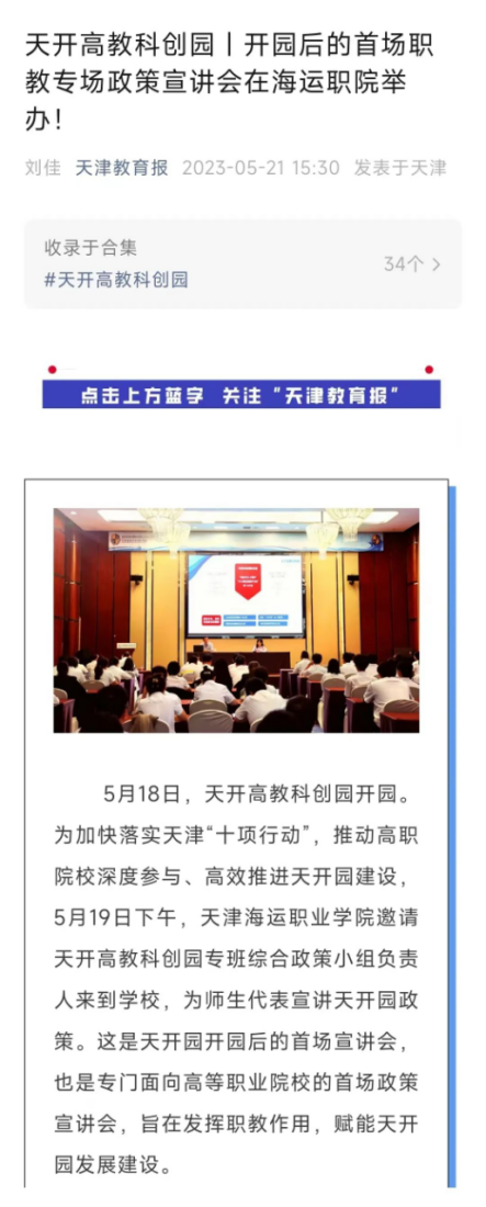 天开高教科创园|开园后的首场职教专场政策宣讲会在海运职院举办!