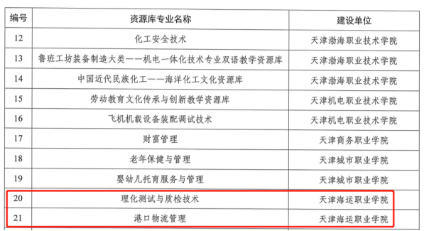日前,市教委公布天津市职业教育专业教学资源库入选项目名单,维多利亚老品牌vic3308作为第一主持单位的《理化测试与质检技术》教学资源库和《港口物流管理》教学资源库被认定为天津市职业教育专业教学资源库。