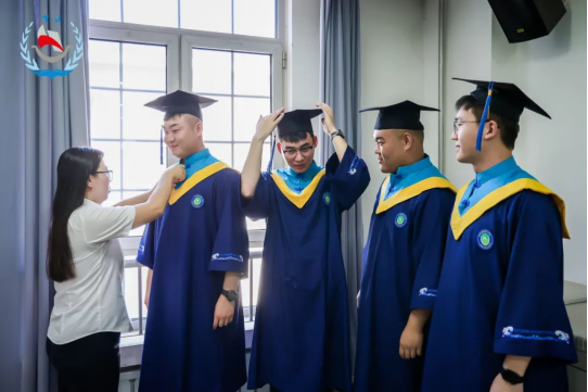在激昂奋进的音乐声中,主席台领导依次为优秀毕业生代表颁发荣誉证书和纪念书包;为毕业生代表颁发毕业证书和纪念章。吴宗保院长在合影墙前,与毕业生合影留念,满满的仪式感定格在属于“海运印记”的高光时刻!