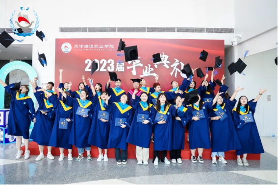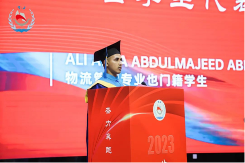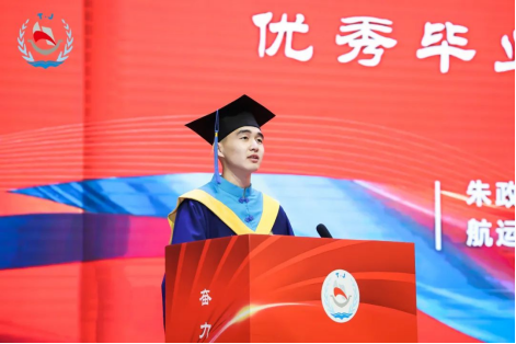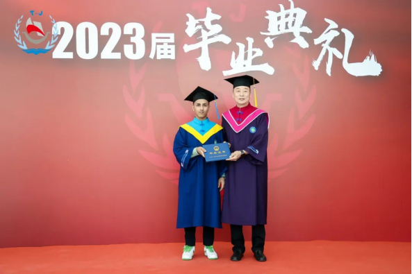航运经济系电子商务专业学生朱政、物流管理专业也门籍留学生阿拉代表2023届全体毕业生发言,言辞真切、依依不舍、感恩母校、感谢恩师、信心满怀、未来可期。天津市惠通船员管理服务有限公司二副、2017级航海技术专业优秀校友车自信分享了自己秉承校训精神、刻苦钻研业务的经历,并激励学弟学妹们要锚定目标、脚踏实地、勇挑重担、坚毅前行。
