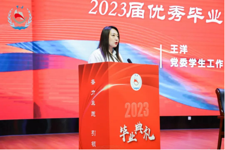 教务处处长宋梦华宣读《关于2023届高职学生毕、结业的决定》,祝贺同学们圆满完成学业。党委学生工作部部长王洋宣读《关于表彰2023届优秀毕业生的决定》,鼓励毕业生做有理想、敢担当、能吃苦、肯奋斗的新时代好青年。