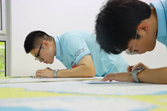 赛场内选手协同合作,埋头绘制航线、沉着应对舵机故障、能见度不良等紧急情况,赛场外指导教师紧盯屏幕,时而表情严肃、时而眉头紧锁……紧张而激烈的气氛笼罩在赛场内外。