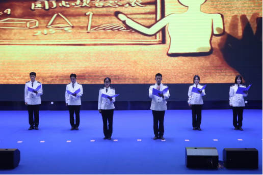 会上,轮机工程系杨钧贺同学向教师献词。学生代表带来诗朗诵《烛光里的赞歌》。