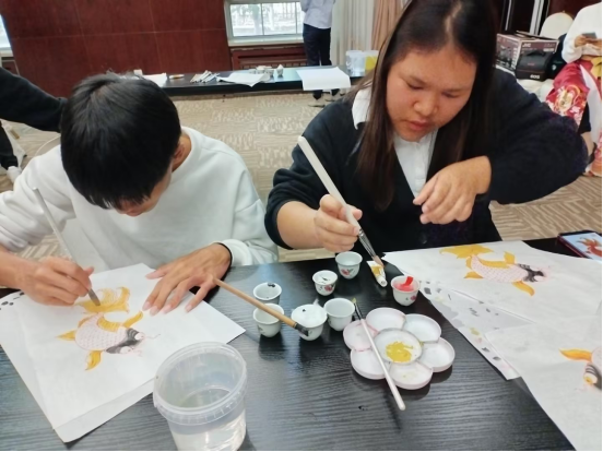 工艺美术师何舒然和盘扣技艺传承人邢晋老师与师生现场交流年画和盘扣的艺术创作,引导学生感受非遗文化的魅力。