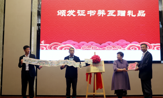 仪式上,宋梦华处长和刘岳社长为“美育课程实践工作室”揭牌。秦爱华书记和杨国强主任向杨柳青画社和邢晋老师颁发了聘书。受聘专家向学院赠送了杨柳青年画《海河绘》和曾氏盘扣《富贵花开》作品。