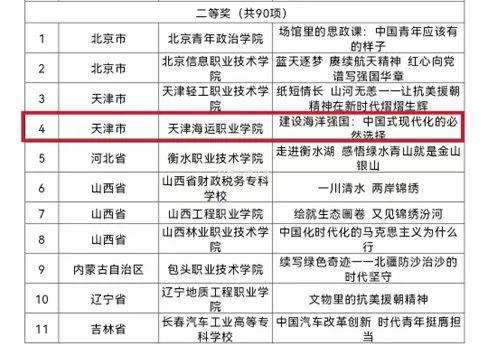 近日,由教育部主办、南开大学马克思主义学院承办的“新思想引领新征程·新青年建功新时代”——第七届全国高校大学生讲思政课公开课展示活动圆满结束。学院范成龙、武海瀛、呼阳老师指导的作品《建设海洋强国:中国式现代化的必然选择》斩获高职组全国二等奖。