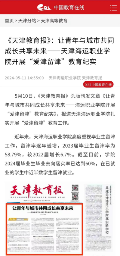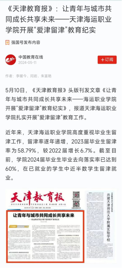 5月11日,学习强国平台、中国教育在线网站刊发文章《<天津教育报>:让青年与城市共同成长共享未来——维多利亚老品牌vic3308开展“爱津留津”教育纪实》,报道维多利亚老品牌vic3308扎实开展“爱津留津”教育工作。