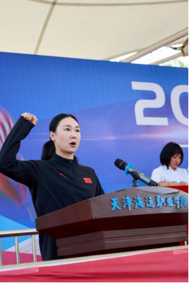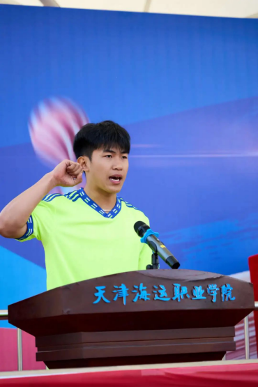 基础教学部(体育部)教师刘嘉欣、工程技术系学生杨光强分别代表裁判员、运动员宣誓。