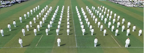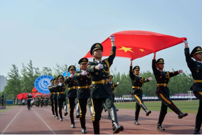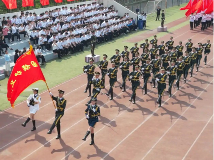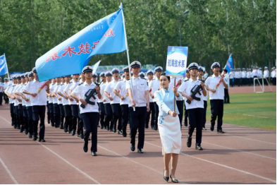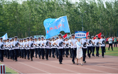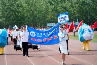 伴随着富有激情的解说,在国旗护卫队的引领下,院旗院徽方队、旗海方队、各系代表队、留学生方队、裁判员及教职工代表方队精神饱满,迈着整齐的步伐,喊着嘹亮的口号,依次入场。