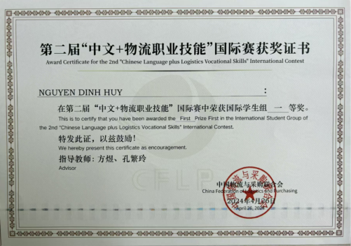 航运经济系师生共同参赛,凭借扎实的专业积累,积极备赛、精心筹划,最终取得优异成绩。学生组斩获奖项14项,教师组斩获奖项11项。现代物流管理专业学生阮挺辉(越南)获得了学生组一等奖,方煜、孔繁玲两位老师获得优秀指导教师奖。中国物流与采购联合会授予学院第二届“中文+物流职业技能”国际赛最佳组织奖。航运经济系高度重视本次比赛。赛前广泛宣传,激发师生的参赛热情;初赛阶段,组织专业教师对学生进行业务培训与赛前辅导,从题型设置到答题技巧进行精准指导,并针对学生在比赛中可能会遇到的专业术语、基本句型进行集中补课,攻克语言关。在决赛项目的准备过程中,指导教师、参赛学生、视频拍摄团队通力合作,深入挖掘学生潜能;组建教师赛导师团队,指导参赛教师进行“备-说-教”的赛题设计,提升参赛教师的创新性课程设计能力、信息化教学实施能力和数字化专业实践能力。