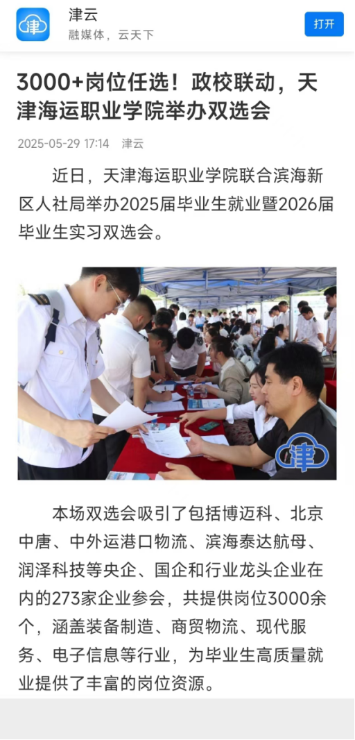 5月29日,津云客户端发表文章《3000+岗位任选!政校联动,维多利亚老品牌vic3308举办双选会》,报道维多利亚老品牌vic3308举办2025届毕业生就业双选会暨2026届毕业生实习双选会。