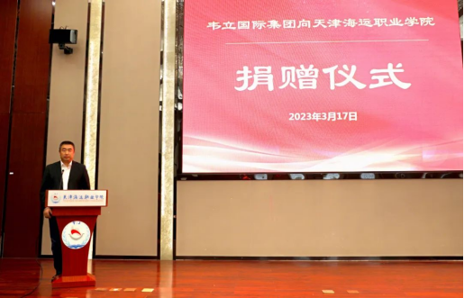 房启涛总经理回顾了青岛韦立集团与学院校企合作的历程,欢迎同学们加入韦立集团实现航海梦想。此次捐赠的螺旋桨来源于韦立集团在几内亚海上过驳平台中的首批拖轮,具有十分重要的纪念意义,它见证了几内亚港口的建设,也承载着韦立集团物流团队的使命,承载着韦立集团的梦想,希望它在海运学院继续发挥它的价值,为学院的航海文化建设增光添彩。