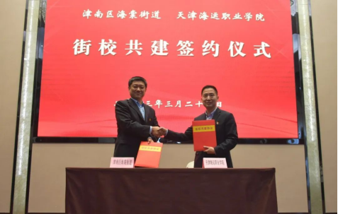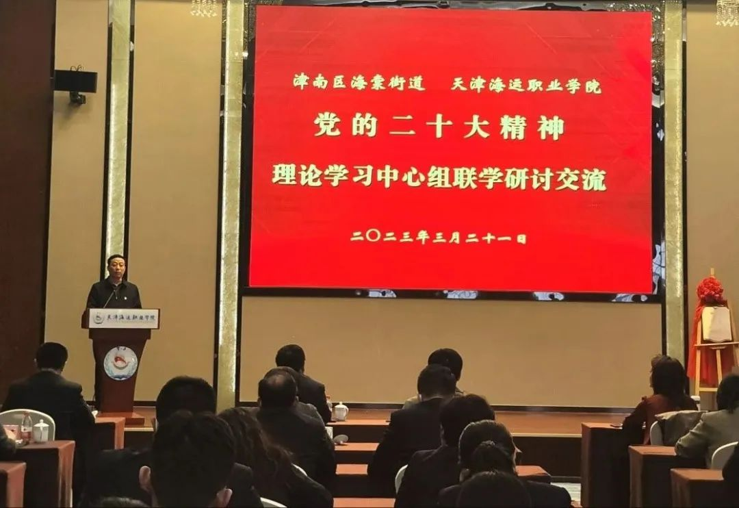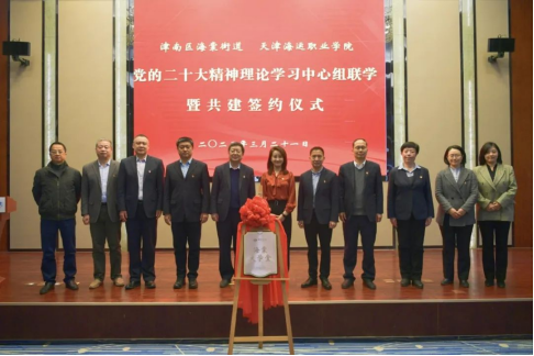 3月21日上午,我院与津南区海棠街道党的二十大精神理论学习中心组联学暨共建签约仪式在学院海邮酒店举行。津南区区委常委、宣传部部长崔德行,学院党委书记张建成,海棠街道党工委书记、人大工委主任李明月出席会议并讲话,海棠街相关部门负责人、学院班子成员、党委理论学习中心组成员、各党支部书记、师生代表等60余人参加会议。