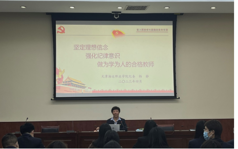 为强化对新入职教师的廉政教育,筑牢思想防线,进一步提升新入职教师履职尽责能力,4月10日下午,学院纪委书记杨静以“坚定理想信念,强化纪律意识,做为学为人的合格教师”为题,为全体新入职教师讲授了一场专题廉政党课。
