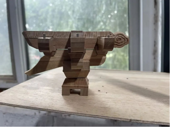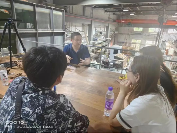 调研学习过程中,天津大学冯轶嘉老师为师生介绍了工作室相关工作,其中包括复原中国古建筑,有著名的独乐寺的山门、佛光寺东大殿及观音阁等,师生们对榫卯连接构造的完美立体几何构造有了直观认识。冯老师详细讲解了中国古建筑中斗拱每一个部件的名称,从数学上说,斗拱的整体形象类似三角形,符合三角不变形的几何原理。在讲解宋代建筑时,大家学习到减柱法和移柱法的运用,了解了不规整形的梁柱铺排形式。
