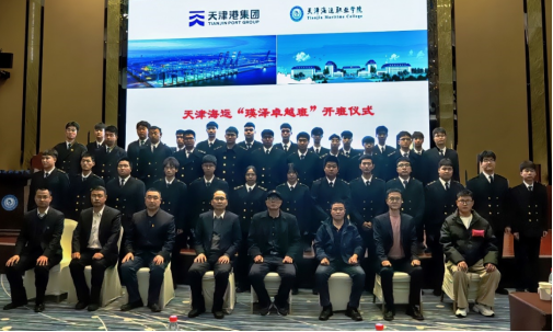 为贯彻落实《国务院办公厅关于深化产教融合的若干意见》,推动教育教学改革,创新现代学徒制人才培养模式,日前,海洋装备系“瑛泽卓越班”开班仪式在学院海邮酒店举行。副院长王明春、教务处处长宋梦华,海洋装备系副主任陈永利、党支部副书记谭刘元、副主任徐燕铭,天津瑛泽装卸服务有限公司副总经理李泽军、人力资源部经理侯元章、生产部经理助理赵赐安,订单班辅导员和订单班全体学生参加了开班仪式,开班仪式由宋梦华主持。