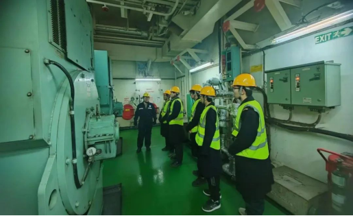 本次活动由北京鑫裕盛船舶管理有限公司主管王晓林和航海技术系辅导员张森老师带队。登船前,张森老师为同学们认真讲解了船上安全问题及注意事项。待船缓缓靠岸后,同学们怀着期待与憧憬登船。在三管轮的带领下,大家首先来到机舱,负责人向同学们介绍了机舱的主要设备布置情况及发电机、锅炉、分油机等设备的相关参数,并参观集控室,学习值班的注意事项。