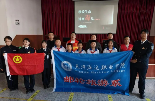 为大力弘扬新时代雷锋精神,持续推动学雷锋志愿活动深入开展,邮轮旅游系将“学雷锋 做志愿”与禁毒宣传教育有机结合,3月13日,与梅江戒毒所津南支队一起走进天津市津南区双桥河第一小学,开展了“珍爱生命·远离毒品”禁毒志愿宣传活动。
